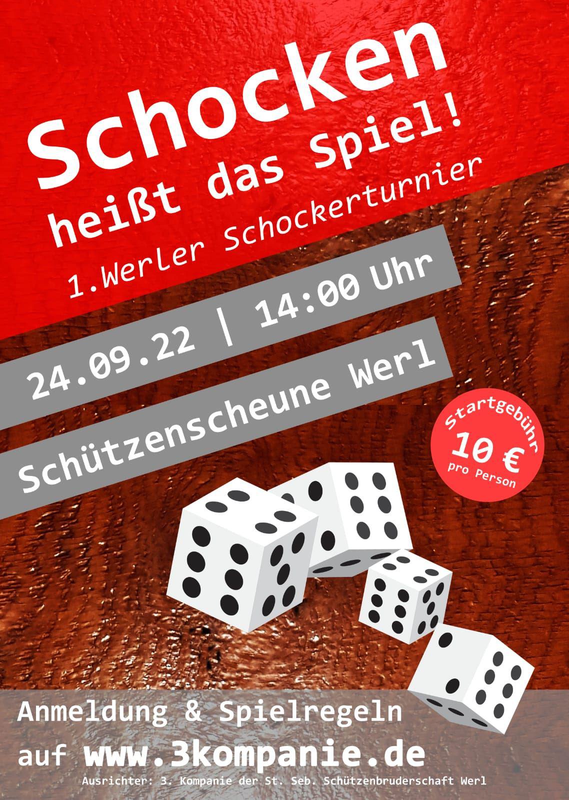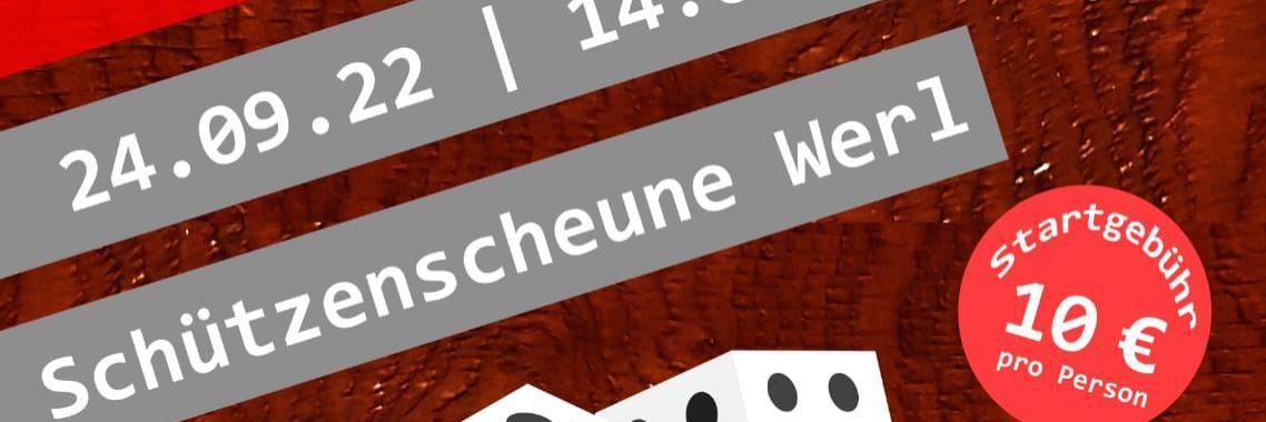 Nachfolgend findet ihr die wichtigsten Informationen zu unserem Schockerturnier am 24.09.2022 in der Schützenscheune Werl.